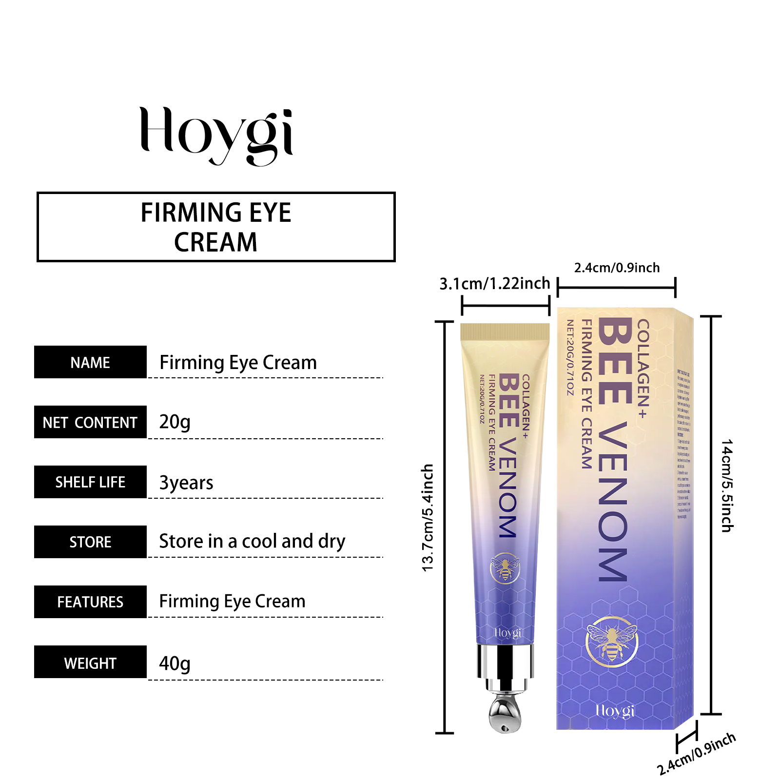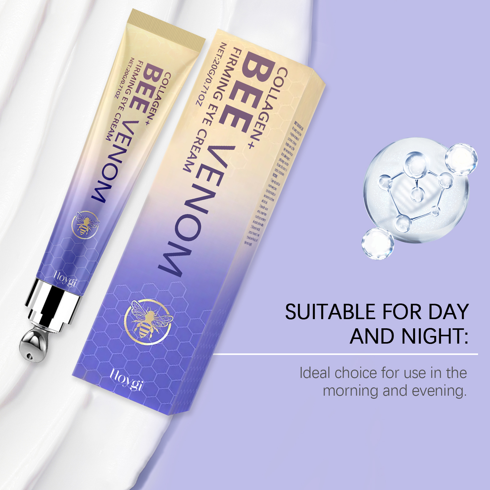 Our bee venom eye cream contains triethanolamine, collagen, bee venom. It moisturizes deeply and is effective and long-lasting. The way to use it is very simple: After cleaning and conditioning, take a piece of eye cream about the size of green beans, rub it on the fingertips to warm up, and then evenly apply it around the eyes. Use the built-in massager to gently massage from outside to inside until absorbed, without pulling the skin. It can also enhance the elasticity of the skin around the eyes.